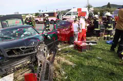 Drei Rettungswägen und der Notarztwagen vom Roten Kreuz Krems waren bereits vor Ort und versorgten die Patienten. Zwei davon waren noch im Fahrzeug, allerdings nicht eingeklemmt.