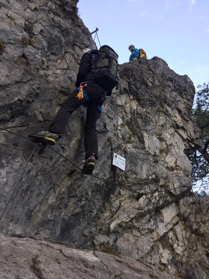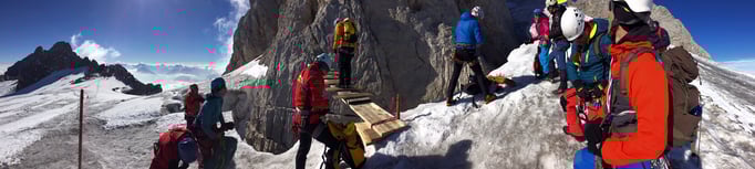 Inhalte des Kurses waren unter anderem Grundlagen der sicheren Bewegung in Klettersteiganlagen, diverse passive und aktive Abseiltechniken sowie Grundlagen der Bewegung am Gletscher.